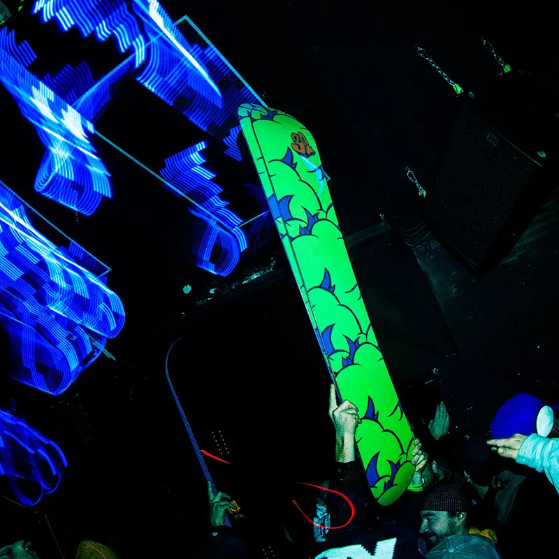 デイブ・ドーマンは、ソルトレイクシティを拠点とするアーティストで、スノーボード・デザイン界で長年活躍してきた存在です。SFK の創設者であり、グラフィック重視のグローブやアクセサリーで知られる Celtek の主要クリエイターとしても知られています。鮮やかな色使いと遊び心あふれるモンスターを特徴とする、グラフィティに影響を受けたスタイルは一目で彼の作品だと分かります。ドーマンの作品は、Technine や Nitro Snowboards に採用されているほか、彼自身が執筆・イラストを手がけた児童書『Spots and Stripes』にも登場しています。